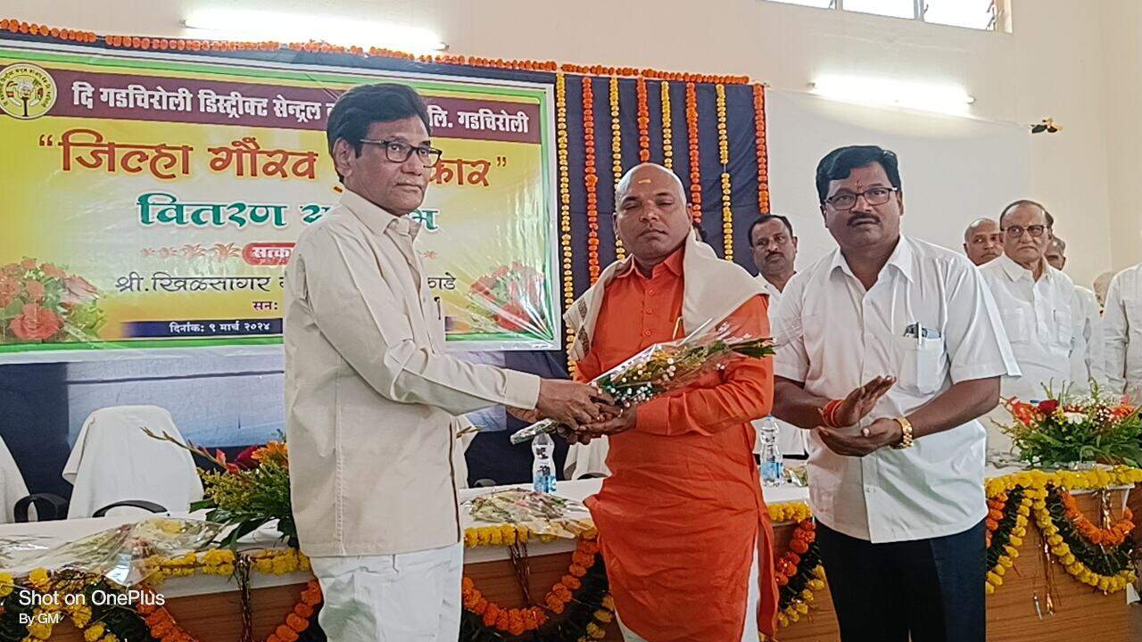 आरमोरी येथील जिल्हा मध्यवर्ती बँकेच्या आरमोरी शाखेच्या सभागृहात आयोजीत कार्यक्रमांत गडचिरोली नागरी सहकारी बँकेचे अध्यक्ष प्रकाश सावकार पोरेड्डीवार यांच्या हस्ते नगर परिषदेचे प्रथम माजी नगराध्यक्ष पवन नारनवरे, माजी उपाध्यक्ष हैदरभाई पंजवानी, माजी पाणीपूरवठा सभापती विलास पारधी, माजी आरोग्य सभापती भारत बावनथडे, माजी बांधकाम सभापती सागर मने, माजी महीला व बालकल्याण सभापती सुनीता चांदेवार, माजी नगरसेवक मिथुन मडावी, नगरसेविका गिता सेलोकार, सुनिता मने, प्रगती नारनवरे यांचा शाल श्रीफळ देऊन सन्मान करण्यात आला.