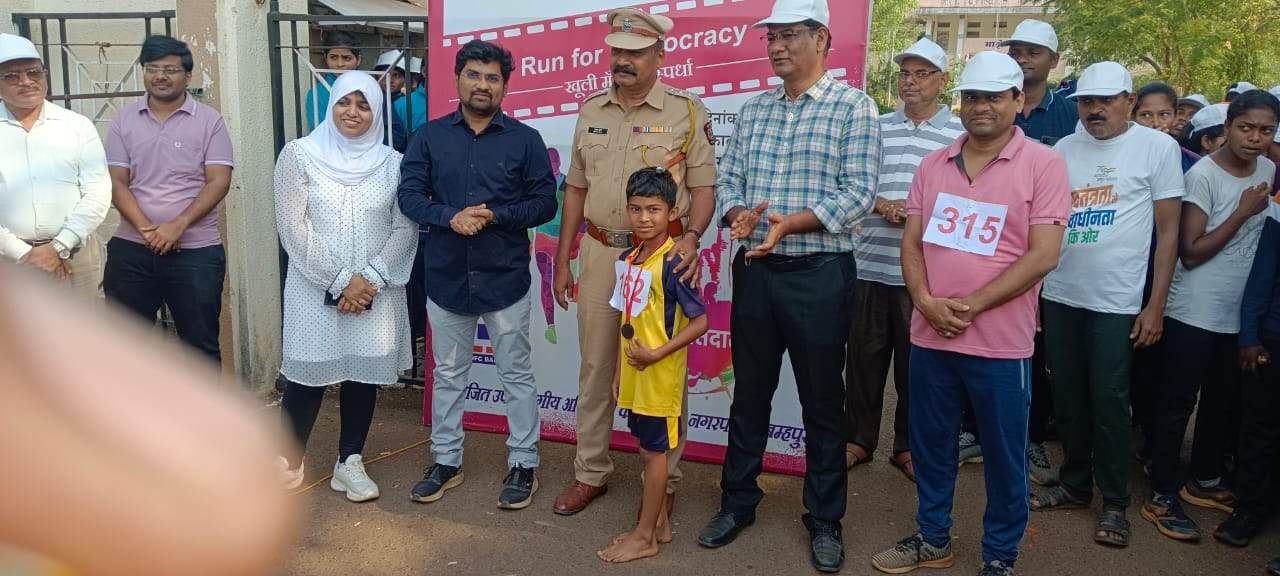 ब्रम्हपुरी :- उपविभागीय अधिकारी कार्यालय, व नगर परिषद ब्रम्हपुरी यांच्या संयुक्त विध्यमाने लोकसभा सार्वत्रिक निवडणुक 2024 च्या अनुषंगाने मतदारांमध्ये जनजागृती करण्याकरीता (SVEEP) कार्यक्रमा अंतर्गत राष्ट्र्रसंत तुकडोजी महाराज ग्राउंड येथे दिनांक 23/03/2024 रोज सकाळी 7.00 वाजता सहा. निवडणुक निर्णय अधिकारी यांच्या उपस्थितीत खुल्या मॅरेथान स्पर्धेचे आयोजन करण्यात आले आहे होते. सदर मॅरेथान स्पर्धेचा मार्ग राष्ट्रसंत तुकडोजी महाराज ग्रांउड ते प्रियदर्शनि इंदिरा गांधी चौक ते पॉलिटेक्नीक कॉलेज असा होता.