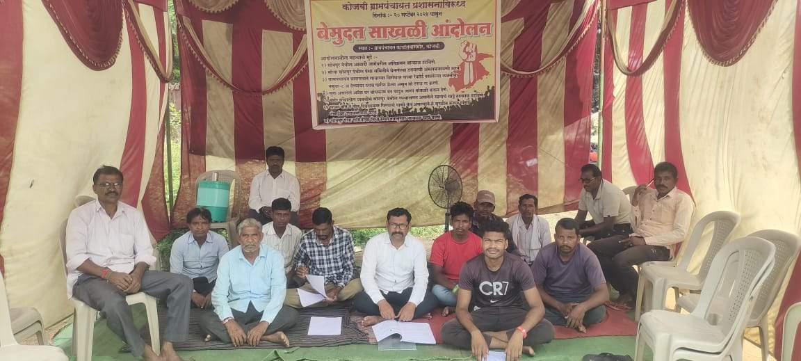 कोजबी ग्रामपंचायत प्रशासन विरोधात तिसऱ्या दिवशीही साखळी आंदोलन सुरूच.
