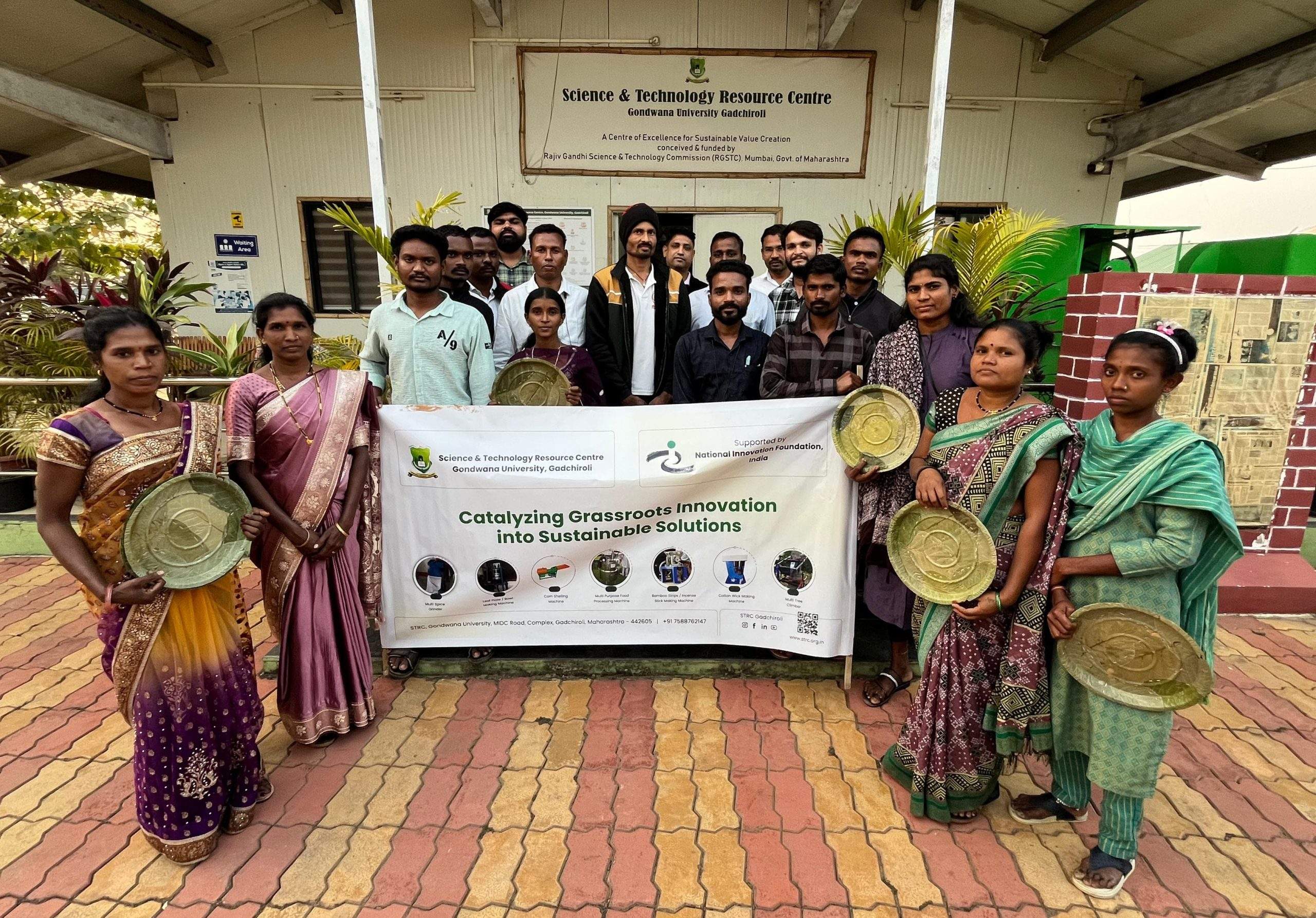 हा उपक्रम राष्ट्रीय नवप्रवर्तन प्रतिष्ठान (NIF) – भारत यांच्या सहकार्याने राबविण्यात आला. ग्रामीण व आदिवासी भागातील स्वयं-सहायता गट तसेच शेतकऱ्यांना कमी खर्चिक, पर्यावरणपूरक आणि उत्पन्नवर्धक तंत्रज्ञान उपलब्ध करून देणे हा उपक्रमाचा मुख्य उद्देश आहे. प्रशिक्षणादरम्यान स्थानिक पातळीवर सहज उपलब्ध कच्च्या मालाचा वापर करून थेट पानांपासून भोजनपात्र तयार करण्याची प्रक्रिया तसेच मसाल्यांचे प्रक्रिया व मूल्यवर्धन याबाबत सविस्तर मार्गदर्शन करण्यात आले. सात ओळखण्यात आलेल्या कमी खर्चिक तंत्रज्ञानांपैकी या उपक्रमात थेट पानांपासून भोजनपात्र मशीन आणि मल्टी-स्पाइस ग्राइंडर या दोन तंत्रज्ञानांचे प्रात्यक्षिक करण्यात आले. यापूर्वी आधीच दोन तंत्रज्ञानांचे प्रात्यक्षिक यशस्वीपणे केले गेले असून, उर्वरित तीन तंत्रज्ञानांचे प्रात्यक्षिक लवकरच आयोजित केले जाणार आहे. धानोरा तालुक्यातील जांभळी, जांगडा आणि खारकडी येथील एकूण २२ सहभागी प्रशिक्षणात सहभागी झाले.