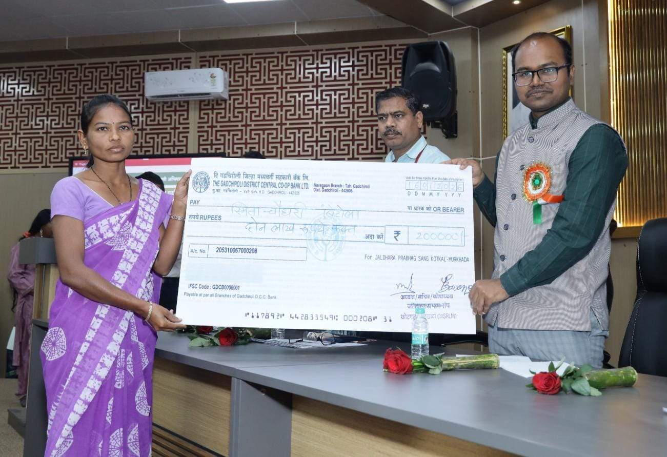 समाजकल्याण सभागृह, गडचिरोली येथे नुकतेच संपन्न झालेल्या गडचिरोली तालुक्यातील मेळाव्यात श्रीमती स्मिता चौधरी, बहिणाबाई आत्राम, विमल मडावी व शशिकला दुमाने या एकल महिलांना त्यांच्या व्यवसायासाठी प्रत्येकी एक लाख रुपयांचे धनादेश प्रदान करण्यात आले.