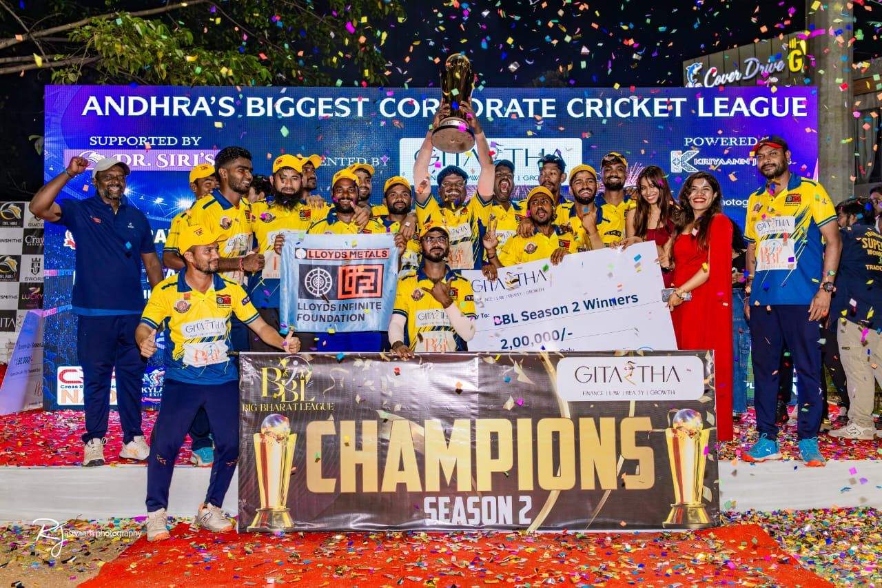 गडचिरोली : जिल्ह्यातील लॉयड्स मेटल्स अॅन्ड एनर्जी लि.च्या संघाने आंध्र प्रदेशातील प्रमुख कॉर्पोरेट क्रिकेट स्पर्धांपैकी एक असलेल्या बिग भारत लीग (BBL) सिझन-2 मध्ये शानदार कामगिरी करत विजेतेपद पटकावले. ही स्पर्धा 14 फेब्रुवारी ते 4 मार्चदरम्यान विशाखापटनम येथे आयोजित करण्यात आली होती. उत्कृष्ट खेळाचे प्रदर्शन करत लॉयड्सच्या क्रिकेट संघाने विजेतेपदाची ट्रॉफी आणि ₹2,00,000 चे रोख पारितोषिक पटकावले.