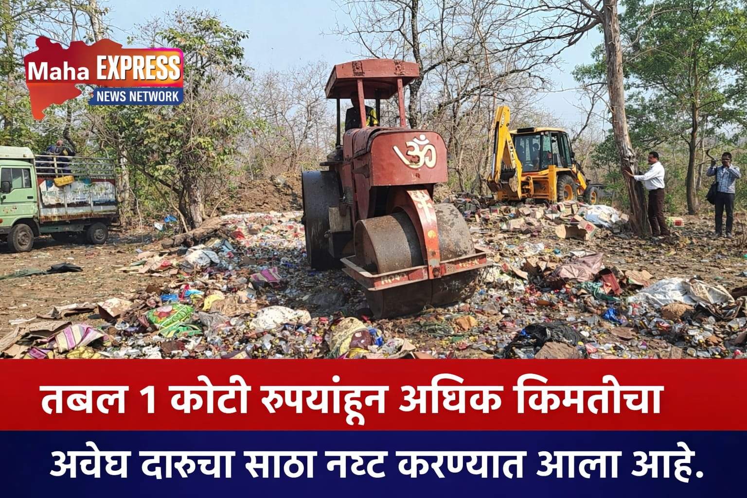 १५९ गुन्ह्यांतील मुद्देमाल नष्ट; जेसीबी-रोड रोलरने बाटल्यांचा चुराडा, पर्यावरणाचीही घेतली काळजी