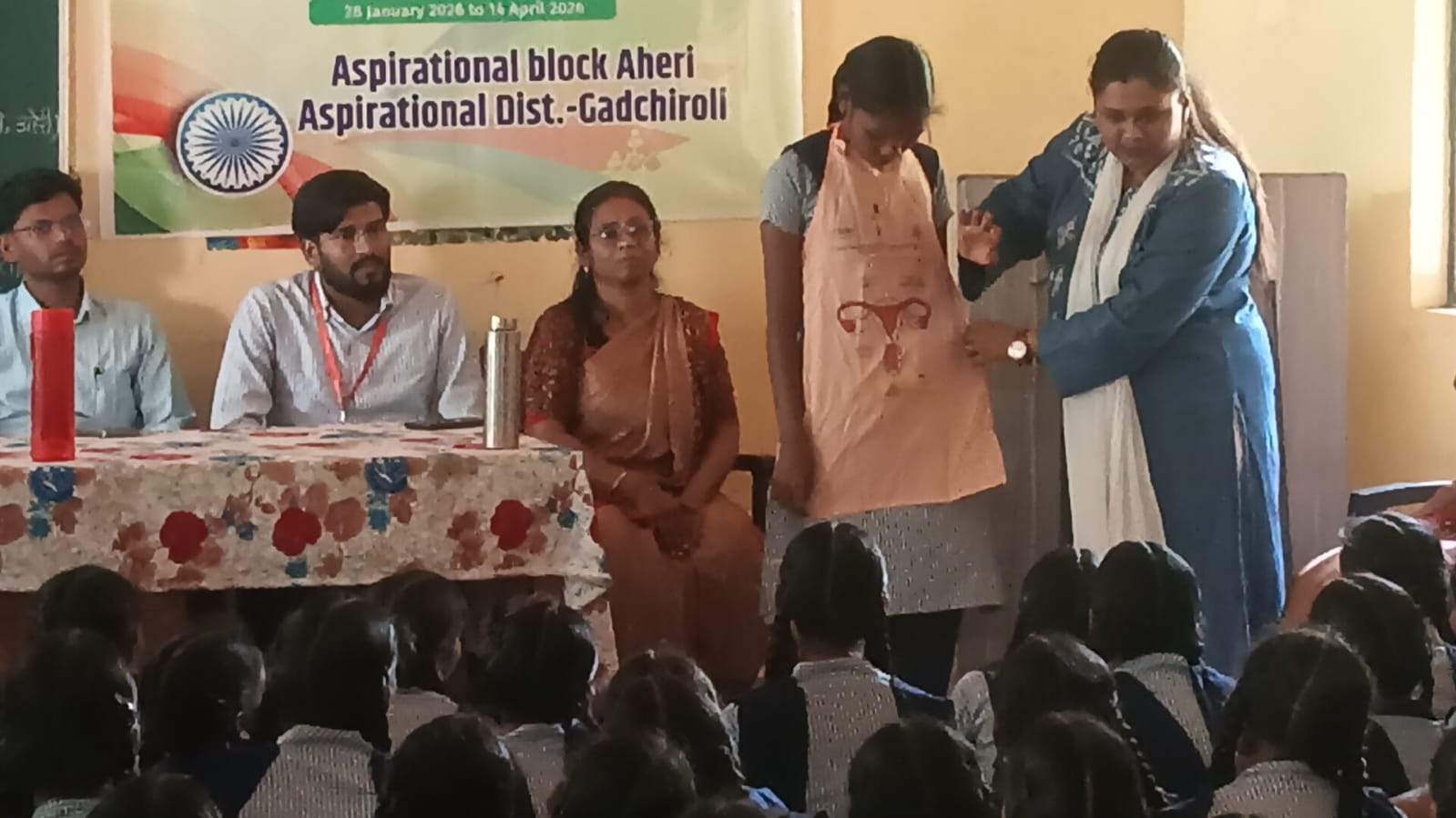 कस्तुरबा गांधी बालिका विद्यालयातील कार्यक्रमाच्या अध्यक्षस्थानी मा. श्री. बाईचवदार सर होते. प्रमुख पाहुणे म्हणून डॉ. लुबना हकीम, श्री. अब्दुल सर (कैवल्य फाउंडेशन), श्री. कोसर (पं. स. अहेरी) तसेच कु. सुरभी शिल्पकार उपस्थित होते.