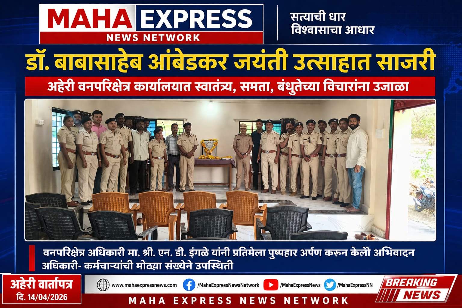 Home Breaking News ЁЯУ░ тАЬрд╕реНрд╡рд╛рддрдВрддреНрд░реНрдп, рд╕рдорддрд╛, рдмрдВрдзреБрддреЗрдЪреНрдпрд╛ рд╡рд┐рдЪрд╛рд░рд╛рдВрдиреА рдЙрдЬрд│рд▓рд╛ рдЕрд╣реЗрд░реА рд╡рдирд╡рд┐рднрд╛рдЧ; рдбреЙ. рдмрд╛рдмрд╛рд╕рд╛рд╣реЗрдм рдЖрдВрдмреЗрдбрдХрд░ рдЬрдпрдВрддреА...