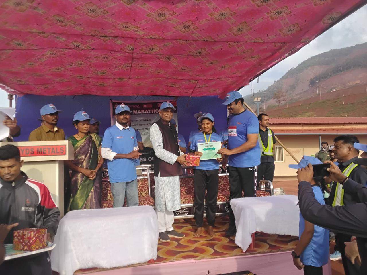माननीय श्री.बी. प्रभाकरन, व्यवस्थापकीय संचालक लॉयड्स मेटलस् अँड एनर्जी लि. लोहखान, सुरजागड यांच्या प्रमुख उपस्थितीत या कार्यक्रमाचे उद्घाटन माननीय पद्मश्री डॉ.परशुराम खुणे यांच्या हस्ते हिरवी झेंडी दाखवून मिनी मॅरेथॉन स्पर्धेला सुरवात करण्यात आली. सदर मिनी मॅरेथॉन वयाच्या गटानुसार घेण्यात आल्याने १८ ते ५५ या वयोगटातील सर्व कंपनीच्या सर्व महिला – पुरुष अशा १३०० कर्मचाऱ्यानी सहभाग घेतला. मीनी मॅरेथॉन स्पर्धेत सहभाग घेणाऱ्या सर्व कर्मचाऱ्याना स्पर्धेच्या निमित्ताने एक टी-शर्ट चे वितरण केल्यानंतर सर्वानी गटानुसार टी-शर्ट घालून स्पर्धेत सहभाग नोंदविला. मॅरेथॉन स्पर्धा आयोजन सि एस आर कॉम्प्लेक्स हेडरी पासून लोहखान सुरजागड कंपनी पर्यंत ५ किमी अंतरात घेण्यात आली. सहभाग घेणाऱ्या स्पर्धकांना मॅरेथॉन मार्गावर ग्लुकोज,फळ देण्यात आले. कार्यक्रमाचे प्रमुख पहुने म्हणून सौ.अरुणाताई सडमेक सरपंच ग्रा.पं. पुरसलगोंदी, श्री.राकेश कवडो उपसरपंच ग्रा.पं. पुरसलगोंदी, कु.वनिता ताई कोरामी सरपंच ग्रा.पं. तोडसा, श्री.नेवलुजी पाटील गावडे सरपंच ग्रा.पं.नागुलवाडी, श्री.विनोद नरोटे ग्रा. प. सदस्य तोडसा, श्री.सि.कुमरेसन, श्री.एस. व्यंकटेश्वरण, श्री. साई कुमार, श्री. भोलू भाऊ सोमनानी, श्री.संजय चांगलानी यांच्या प्रमुख उपस्थितीत स्पर्धेत विजेत्यांना शिल्ड, मेडल, बक्षीस देवून गौरविण्यात आले. सोबतच याप्रसंगी लॉयड्स मेटल अँड एनर्जी लिमिटेड कंपनी मध्ये २७ वर्ष सेवा देणारे माननीय के.सत्याराव सर आज निवृत्ती घेत असल्याचे घोषित केल्याने त्यांचे शॉल व श्रीफळ देवून सत्कार करण्यात आले. बक्षीस वितरण कार्यक्रमाच्या दरम्यान माननीय श्री.बी. प्रभाकरन सरांनी आपले मनोगत व्यक्त करताना आज लॉयड्स मेटल अँड एनर्जी लिमिटेडकडून झालेल्या आयोजित मॅरेथॉन स्पर्धेत आपल्या कंपणीचे सर्व महिला – पुरुष कर्मचाऱ्यानी सहभाग घेतला. मला खूप आनंद झाला आणि ही मोठी गौरवाची बाब आहे. या पुढे स्थानिक समुदायात सकारात्मकता, जोश, उत्साह आणण्याकरिता नेहमी अश्या स्पर्धेचे आयोजन करीत या भागातील युवक – युवती करीता एक उत्तम प्लॅटफॉर्म उपलब्ध करून देण्याच मानस असल्याचे सांगितले. पण त्या करीता फक्त आपली तयारी पाहिजे, आपण सगळे मिळून सोबत काम करत राहू.. फक्त मला आपल्या लोकांचा साथ पाहिजे.. तेव्हा मलाही आपल्या मनासारखा काम करता येईल व जे पाहिजे आहे ते साध्य करण्याच प्रयत्न करीन. अस आव्हान व्यवस्थापकीय संचालक यांनी केले आहे. या संपूर्ण कार्यक्रमाचे सूत्रसंचालन श्री. सौरव वालीया यांनी तर आभार प्रदर्शन कु. जानवी शेंडे यांनी केले समस्त कार्यक्रमाला सर्व कर्मचाऱ्यानी प्रामुख्याने सहभाग घेवून सदर कार्यक्रम यशस्वीरित्या