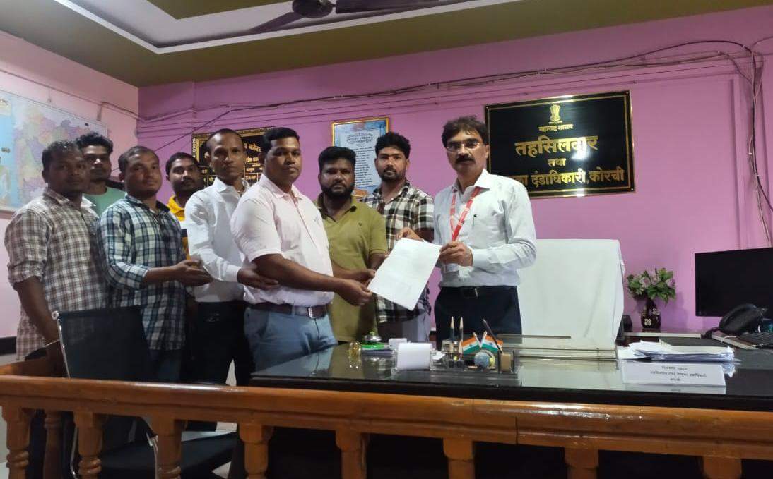 कोरची तहसीलदार प्रशांत गड्डम यांना निवेदन देताना माजी पंचायत समिती सभापती श्रावण कुमार मातलाम, नागपूर ग्रामपंचायत उपसरपंच परमेश्वर लोहंबरे, प्रतिष्ठित नागरिक चंद्रशेखर उमरे, राजेंद्र शेखावत, दानशूर हलामी, लिलेश मडावी, धर्मेंद्रकुमार टाटपलान, देवराम हारामी, सुरेश भारद्वाज, लखनलाल सोनवाणी, विजय उमरे, अर्जुन मुलेटी, सूर्यप्रताप मडावी, आशिष नैताम, यशवंत मडावी, भोगेंद्र कोटगले, मिथुन तांबीकर, मनूराम नैताम आदि उपस्थित होते.