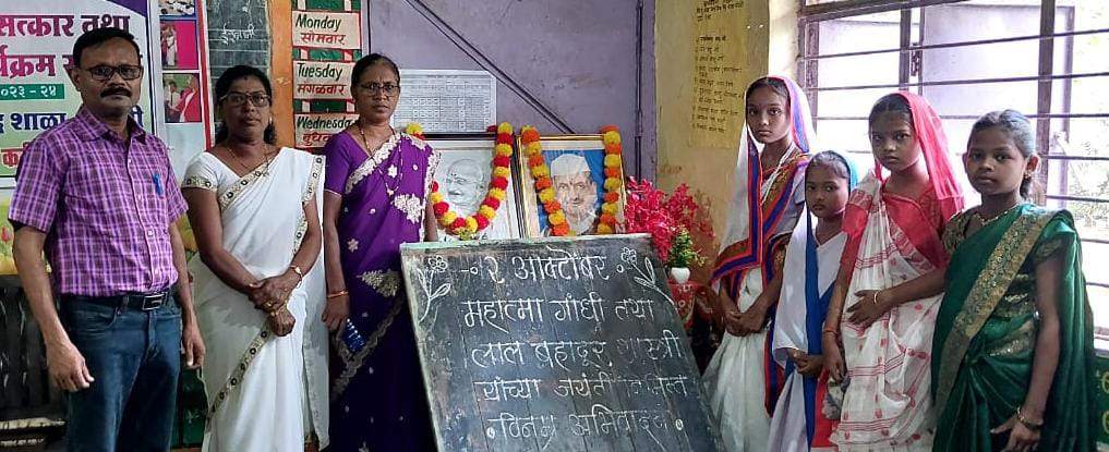 जि.प.कोरची शाळेत म.गांधी व लाल बहादूर शास्त्री यांची जयंती उत्साहात संपन्न