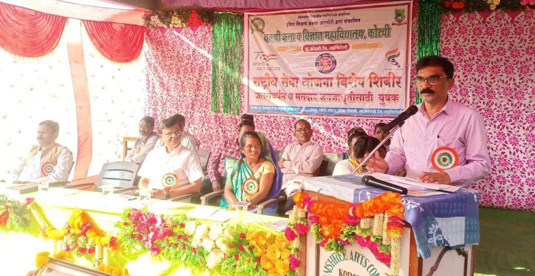 कार्यक्रमाचे उदघाटक म्हणून बोलतांना कोरचीचे तहसीलदार प्रशांत गड्डम म्हणाले की, राष्ट्रीय सेवा योजना चे ब्रीदवाक्य स्वतःसाठी नाही तर समाजासाठी आपण श्रम केले पाहिजे. विद्यार्थांनी आपले पुस्तकी ज्ञान समाजकार्य करण्यासाठी उपयोगी आणले पाहिजे समाजाचे एक घटक म्हणून समाजाबद्दल आपुलकीची भावना असली पाहिजे. आपल्याजवळ असलेल्या क्षमताचा पुरेपूर वापर करून आपले जीवनमान उंच शिखरावर नेले पाहिजे असेही ते म्हणाले. या कार्यक्रमा दरम्यान उपसरपंच धनिराम नैताम, ग्रा प सदस्या देशीरबाई घाटघुमर, झाडूराम हलामी, इजामसाय काटेगे यांनीसुद्धा मार्गदर्शक केले.